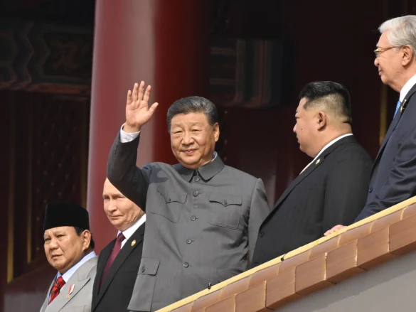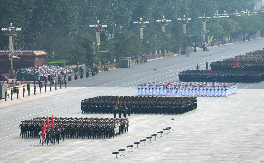 北京天安門廣場週三(3日)舉行中國人民抗日戰爭暨世界反法西斯戰爭勝利80周年紀念大會。中共中央總書記、國家主席、中央軍委主席習近平與外國元首及抗戰老兵一同登上城樓,觀賞盛大的閱兵儀式。