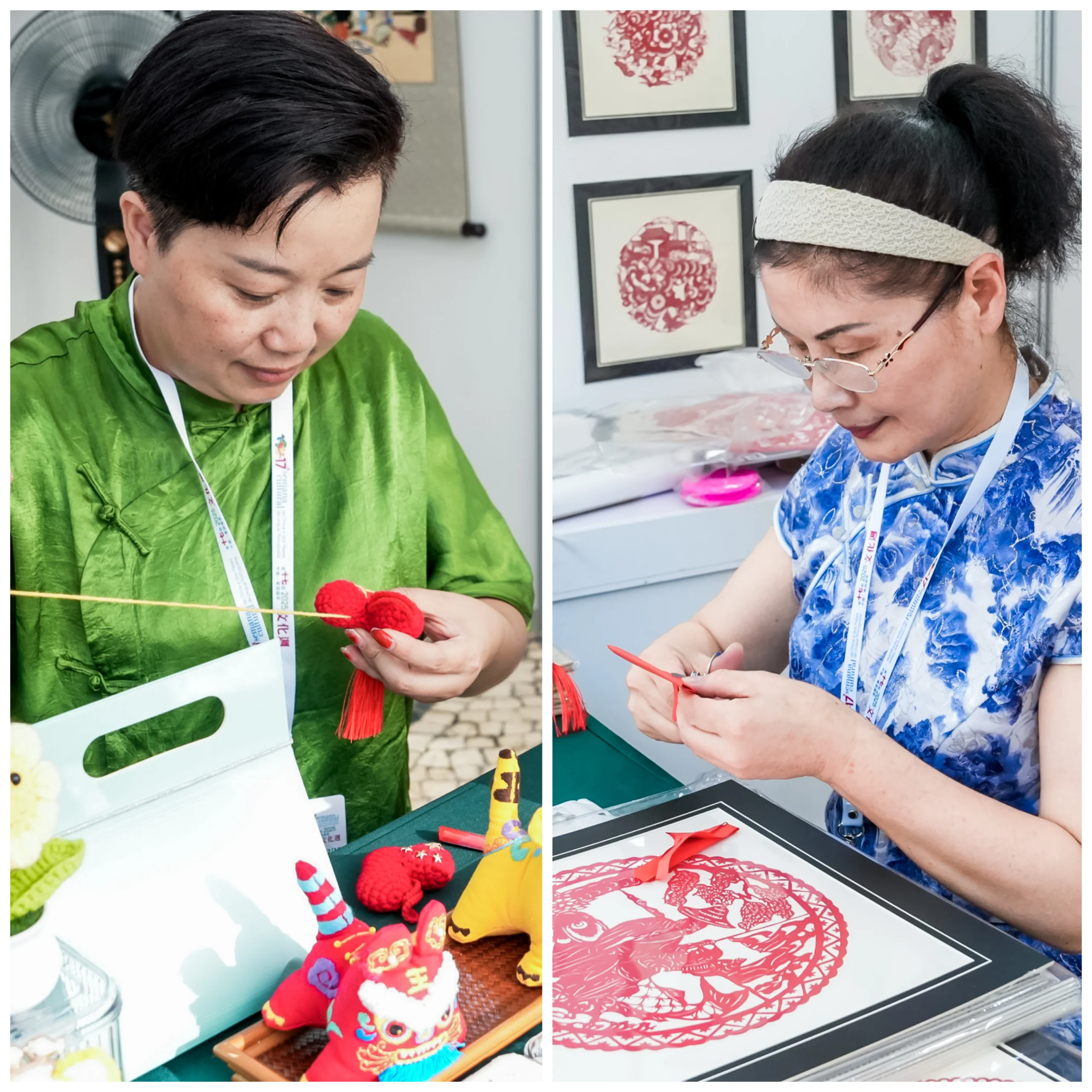 手工藝市集特別邀請浙江省兩位非遺傳承人,現場展示浦江剪紙與「十字花」刺繡技藝。同時,來自9個葡語國家的手工藝師在漁人碼頭設攤,呈現瓷藝、編織、雕刻等作品,澳門本地藝師也共同參與,展現獨特文化風貌。