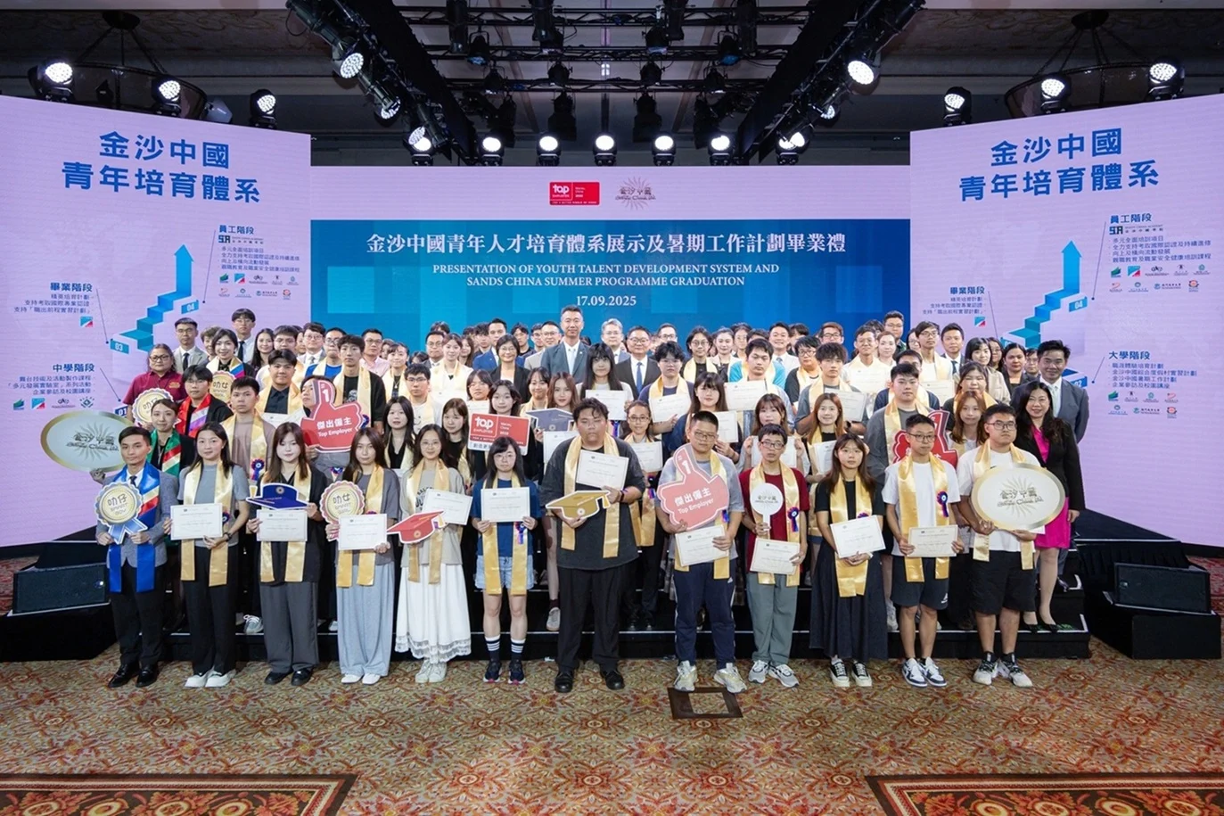 金沙中國有限公司9月17日於澳門倫敦人舉辦活動,為政府部門、教育界及業界合作夥伴介紹「青年人才培育體系」,並為154位完成暑期工作計劃的本地青年舉行畢業禮。
