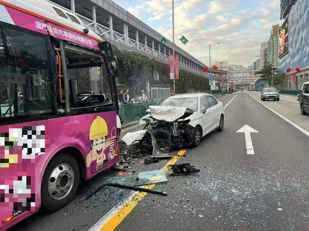 事故導致私家車男司機及巴士上7名女乘客受傷,年齡介乎4歲至70歲,他們均為澳門居民。20多歲的私家車司機未能通過酒精呼氣測試,警方指事故成因疑涉及私家車逆駛及醉駕。