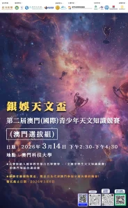 「銀娛天文盃」即日起至3月6日接受全澳中學生報名。「銀娛天文盃」是國家教育部白名單賽事「全國中學生天文知識競賽」的澳門區選拔賽,優勝者將有機會代表澳門參加這項國家級賽事,與全國頂尖學子同台競技,展現澳門青少年的科學素養與探索精神。