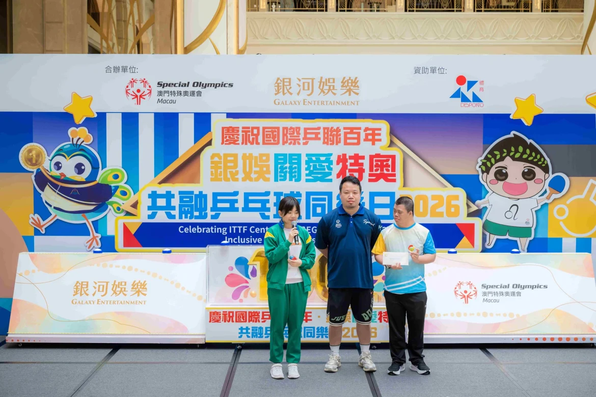 今年適逢「2026年澳門國際乒聯男子及女子世界盃—由銀河娛樂集團呈獻」(「國際乒聯男女子世界盃」)於3月30日至4月5日在銀河綜藝館舉行,在國際乒乓球聯合會(下稱「國際乒聯」)的支持下,銀娛與特奧會於3月29日舉辦「慶祝國際乒聯百年・銀娛關愛特奧共融乒乓球同樂日2026」(下稱「同樂日」),分別在澳門銀河及澳門百老匯舉行,吸引近千名參加者參與。