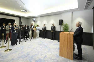 在約400位嘉賓出席的官方歡迎晚會上,岑浩輝描繪了一個以法治和可預期性為基礎、在「國際化營商環境」中實現「高質量」經濟的願景。活動於MEO競技場舉行,他呼籲葡萄牙企業「把握機遇」,積極開拓澳門、橫琴及中國內地市場。岑浩輝還提出了多個具體行業方向,包括數字經濟、海洋經濟、金融科技、環境可持續發展、跨境電子商務等。