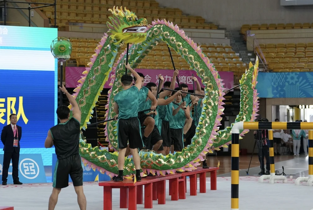 決賽現場氣氛熱烈,澳門隊員手持長達9米的龍具登場,隨著鼓聲響 …